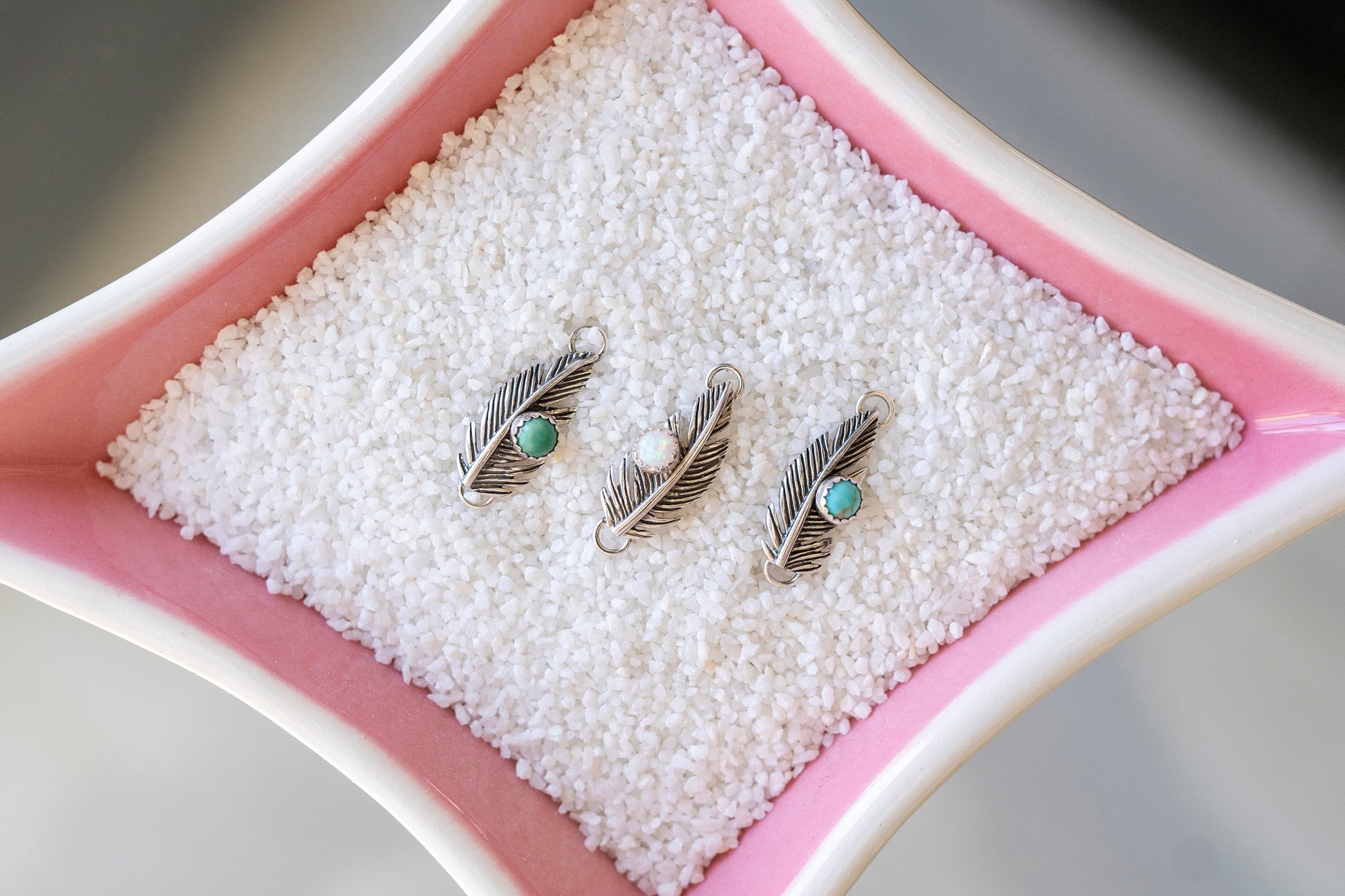 1 Sterling Silver “Feather” Connector w/4mm Bello Opal Or Kingman Turquoise