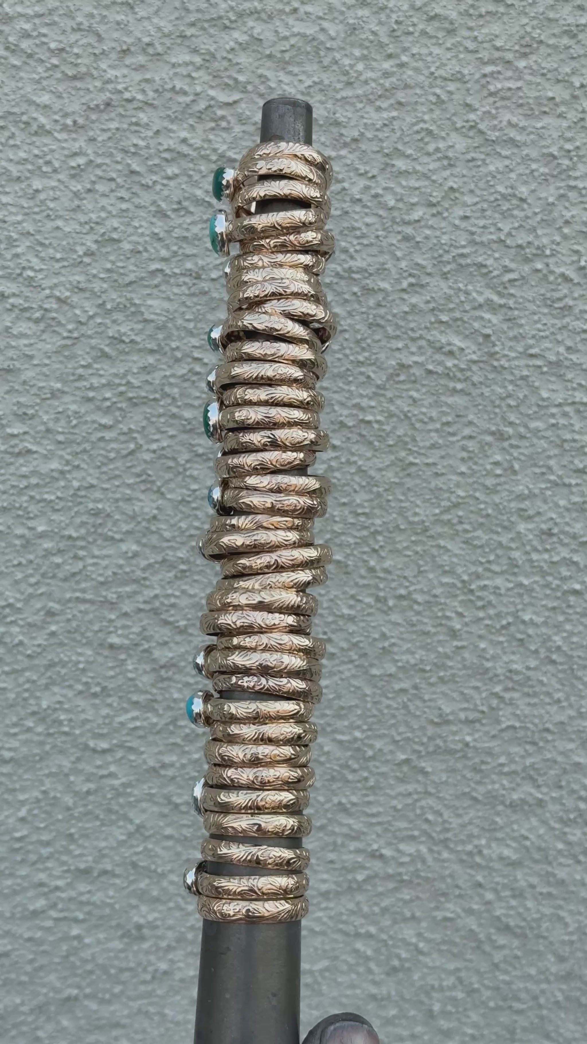 These Rings Are Made With A 14k Gold Filled Floral Pattern And A 9x7mm Kingman Turquoise Bezels In Sterling Silver.
