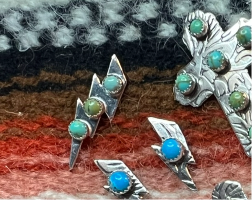 These Sterling Silver Bolts Are About An Inch And Have 3 4mm Kingman Turquoise On Them.