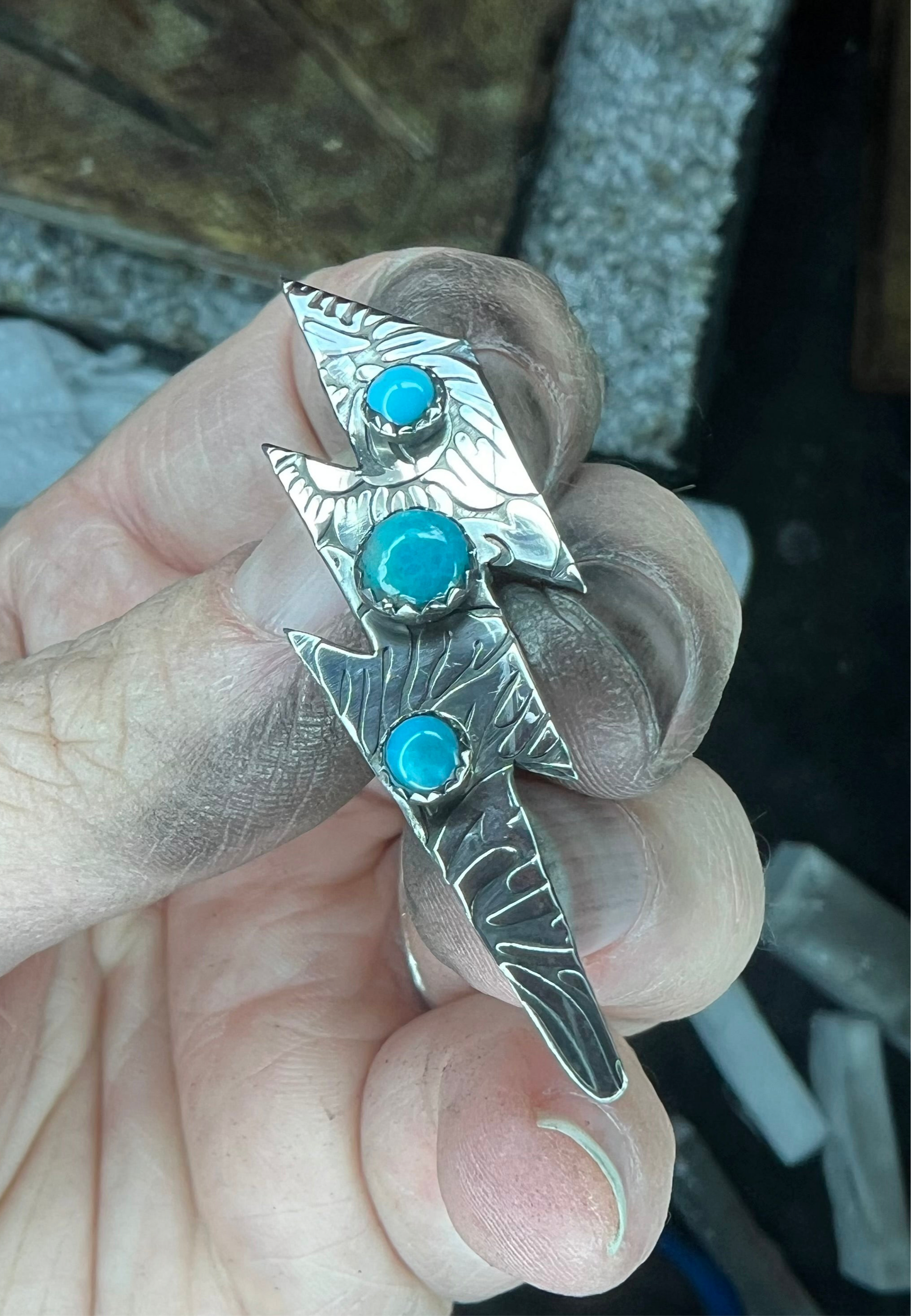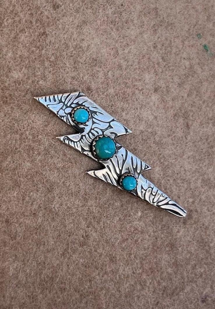 This Bolt Has A Lovely Floral Texture And 3 Kingman Turquoise. The Back Has Two Pink Backs Made Of Nickel.