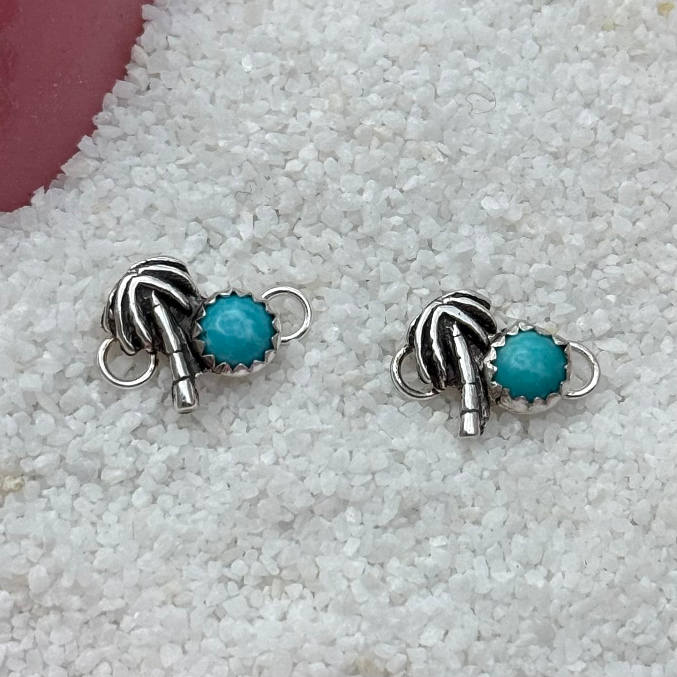 Coastal Cowgirl Series. Sterling Silver Palm Tree connector featuring 5mm Kingman Turquoise