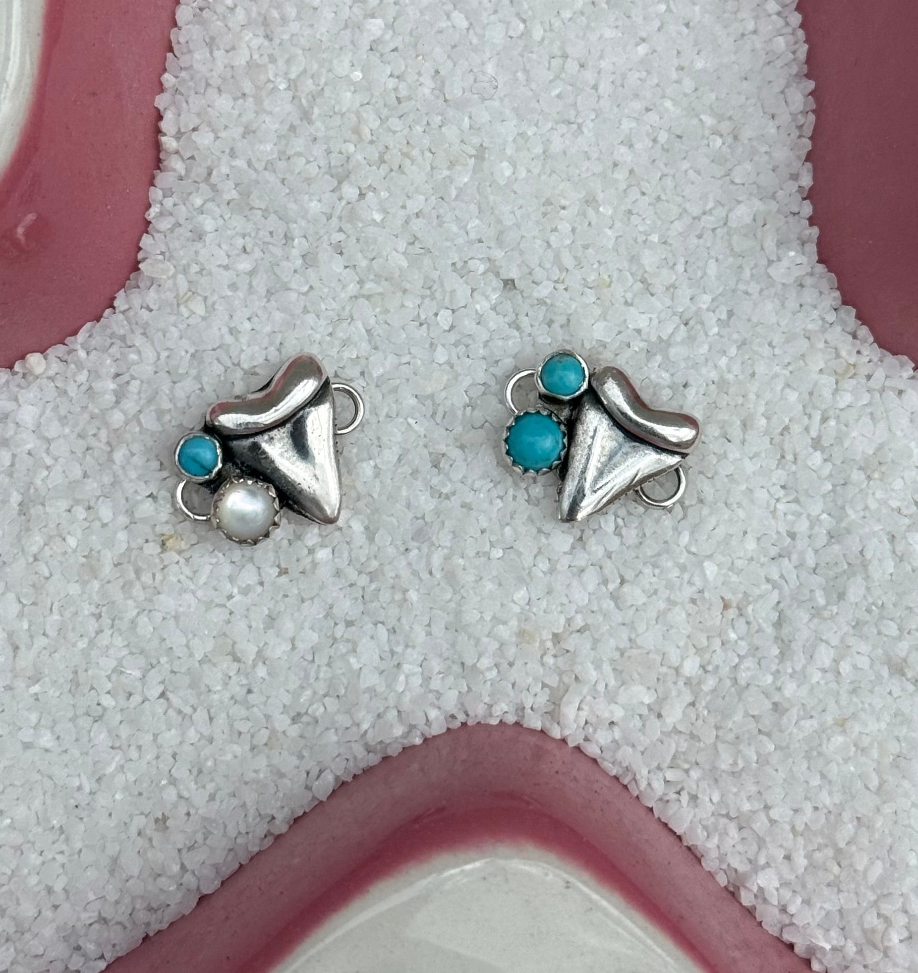 Coastal Cowgirl Series. Sterling Silver Shark Tooth connector featuring 4mm Kingman Turquoise & 3mm Mother Of Pearl or 4mm and 3mm Kingman Turquoise