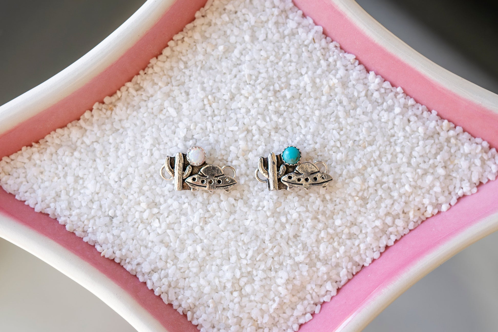 1 Sterling Silver “Spaceship ” Connector w/4mm Kingman Turquoise or Bella Opal