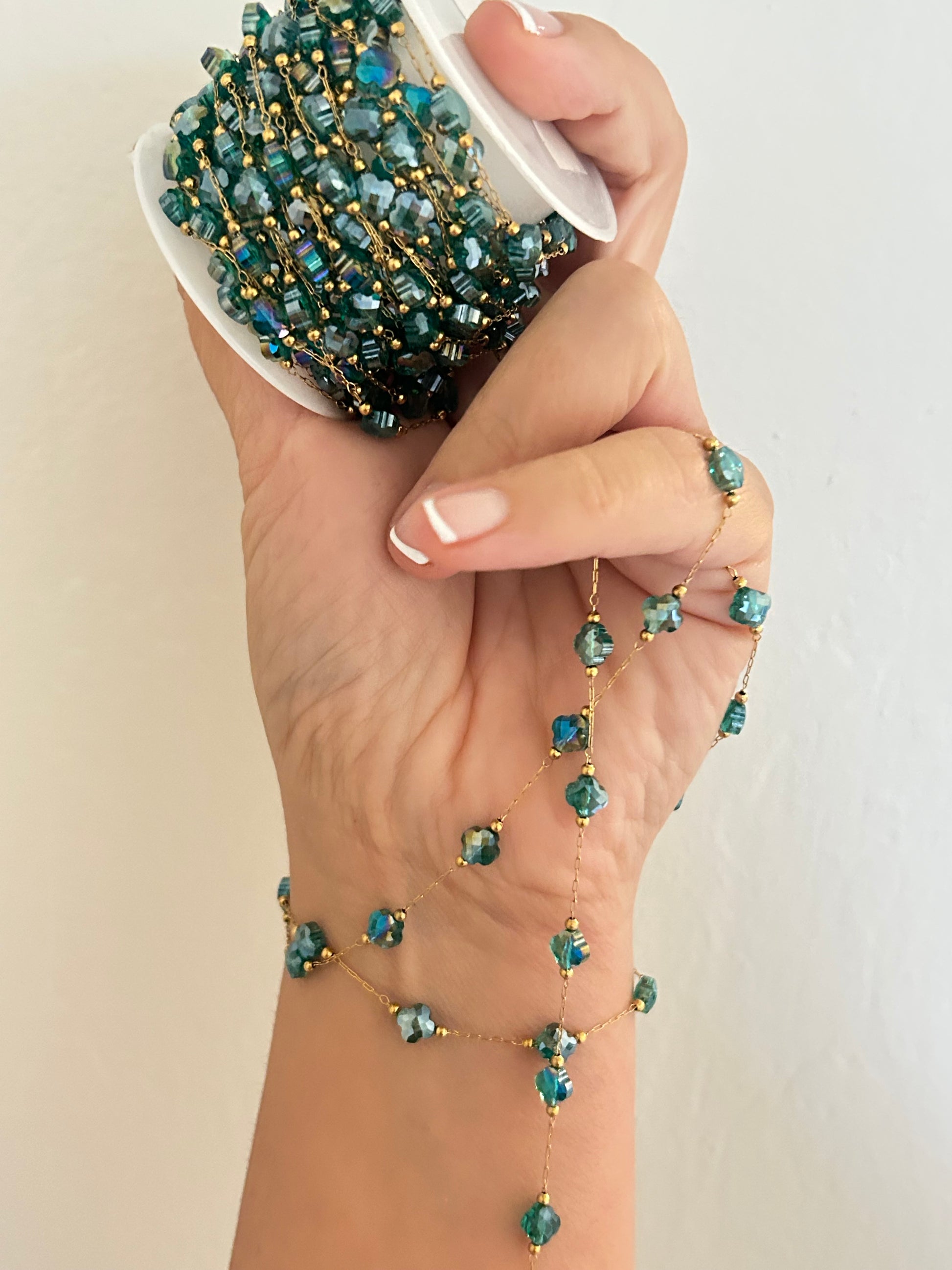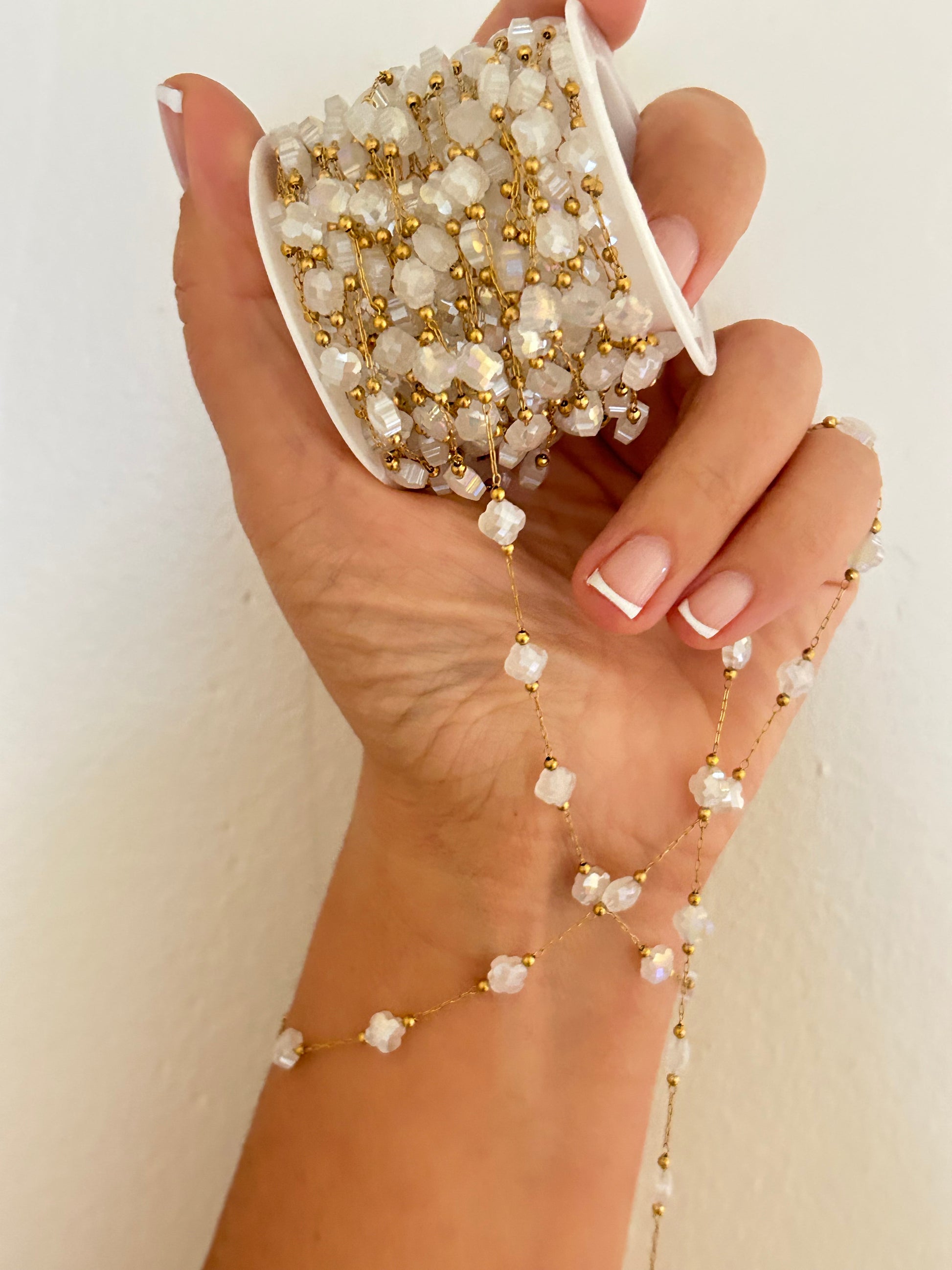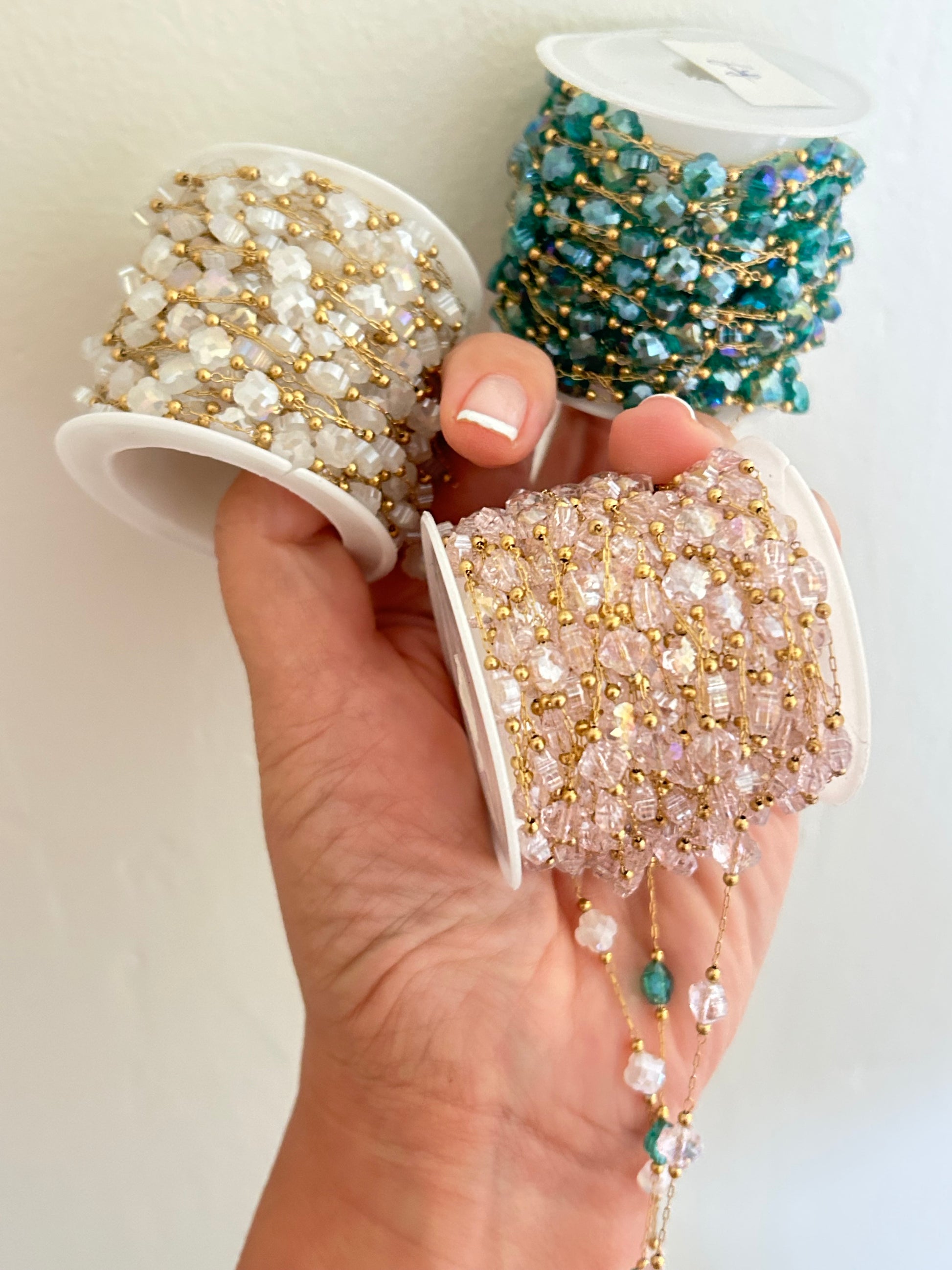 Stainless Steel PVD Coated Crystal Chain By the foot.