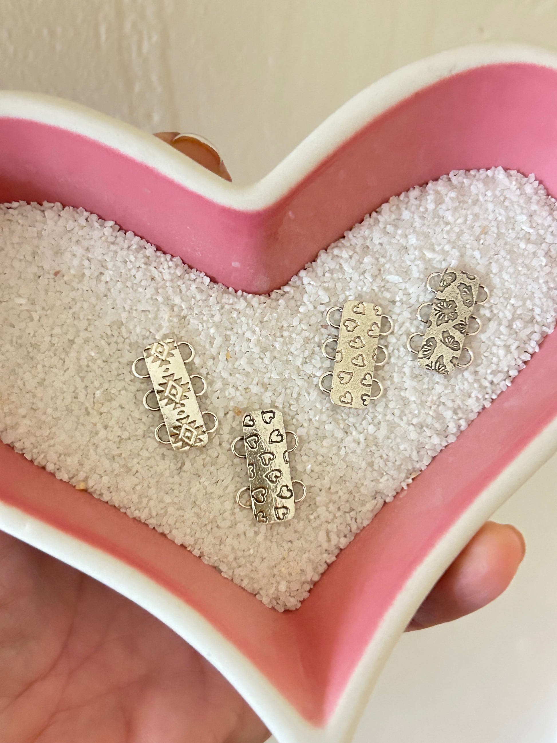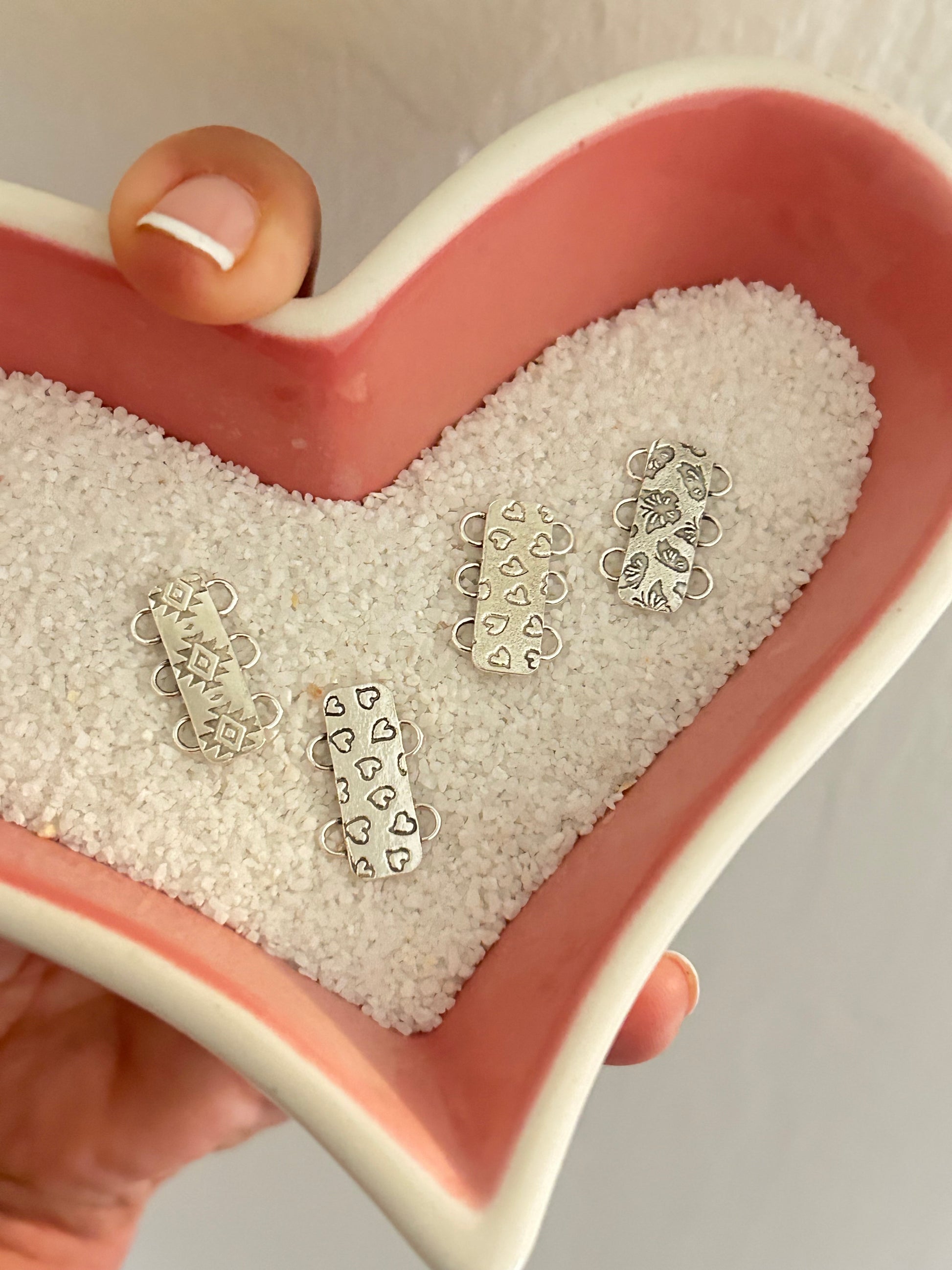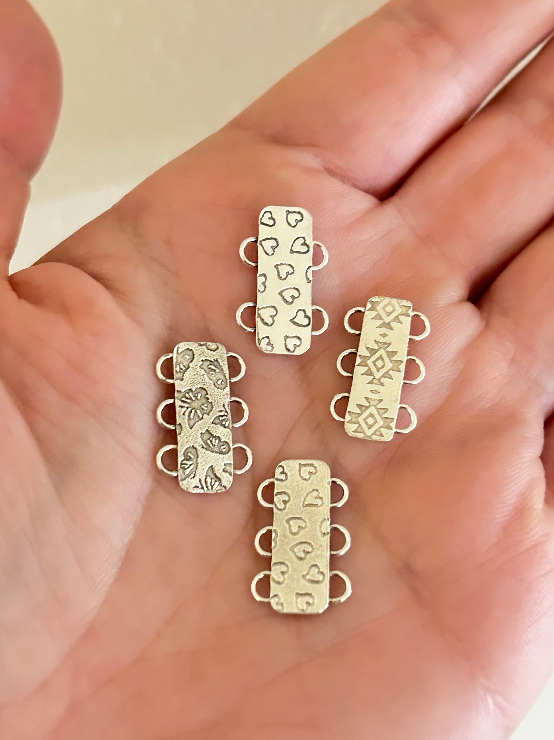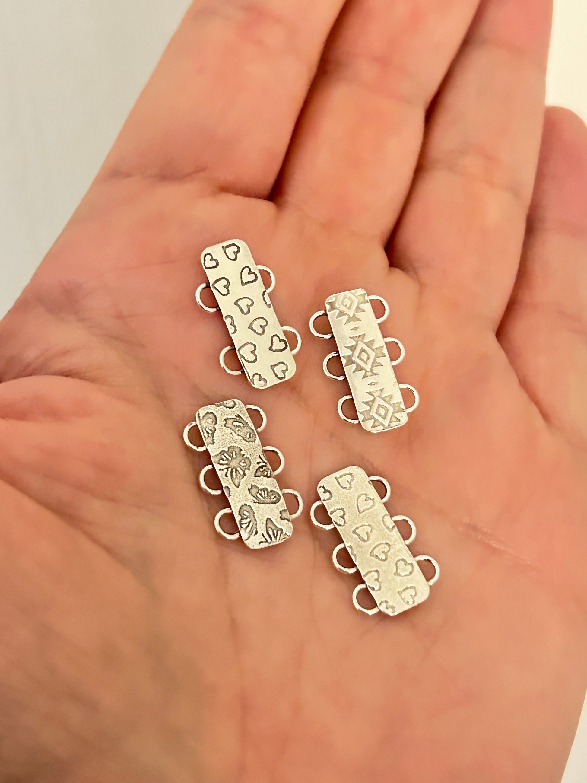"Playfully Untangled” Is A Sterling Silver Chain Anchor, Connector For Permanent Jewelry Featuring A Hand-Stamped Pattern.