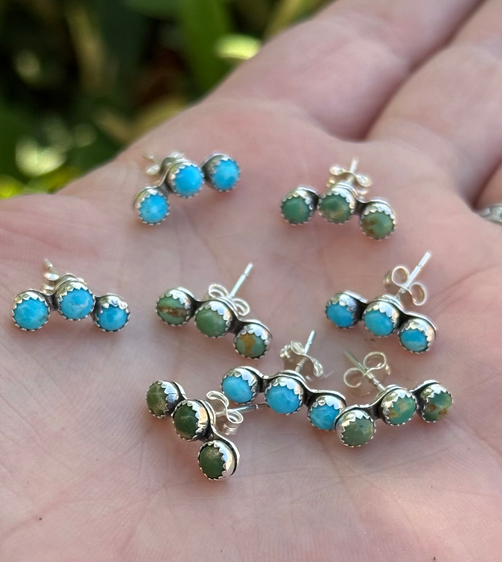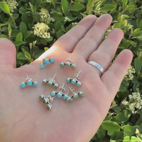These Mini Sterling Silver Ear Crawlers Are Made With Three 4mm Kingman Turquoise.